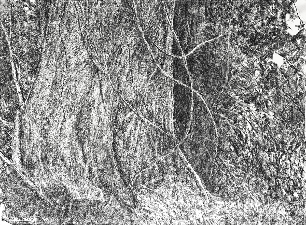 desenho a carvão sobre papel, 75 x 110 cm